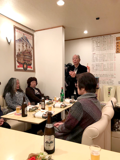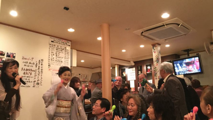 真木さんが「紺屋高尾」を唄い次に「三十年の歌語り」と楽しい新年会となりました。次に真木さんより、好きでこの世界に入り、30年経ち三味線やボイスレッスンに励みましたとお話しがあり、10/8に渋谷伝承ホールでコンサートあり、一人芝居もあり、昼夜2回 公演です、と、その後皆んな真木さんの歌をカラオケで歌い15:30に閉会となりました。3/11(月曜)には中野サンプラザで下地亜記子先生との思い出ライブの開催があると、の話しがありました。