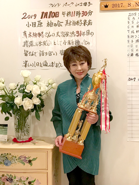 3月1日(木) 小田原柚の会の会合が小田原フレンドパークで13:00から開催されました、会員27名中16名が参加、当日は春の嵐で大変でしたが多くの会員の参加がありました。まず柴田会長より「会員も今27名となりました、今年6月にはハワイ公演 があります、12月にはディナーショー(新曲発表)が椿山荘であり、今から積立して皆んなで参加よろしくとの事!」又真木柚布子カラオケ大会で85点以上の会員に会長より景品のプレゼントがありました。柚の会全国総会が和歌山で3/4(日曜)5(月曜)に開催するにあたり小田原から参加します。 又、小田原柚の会員会合が年4回に変更となり出席会員により承認されました。次回は7月の開催となります。年4回なので皆さんの出席をお願いします。その後会計、事務局より報告があり、真木柚布子さんをビッグにする為にはどうしたら良いのかと色々案を出して全国総会で提案したいとの事でした。その後真木柚布子カラオケ大会となりました。16:00に解散です。