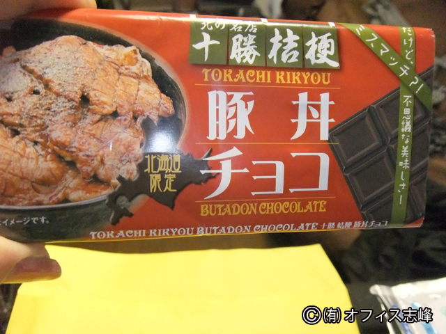その名も"北の名店桔梗 豚丼チョコ"横には、「ミスマッチ?だけど不思議な美味しさ」と書いてあるが、あまりのミスマッチさに、今日までどうしたものかと食べずにいたが、ついに今日思い切って食べてみた。どんな味か・・?聞きたいでしょ?想像していたほどびっくりするような味ではないものの、けっしてまずいわけでもなく、豚丼をイメージして食べたせいか、ほんのり豚丼の香りが鼻に残る気もするし・・何とも説明不足ですみません。でも、やっぱりチョコでした。