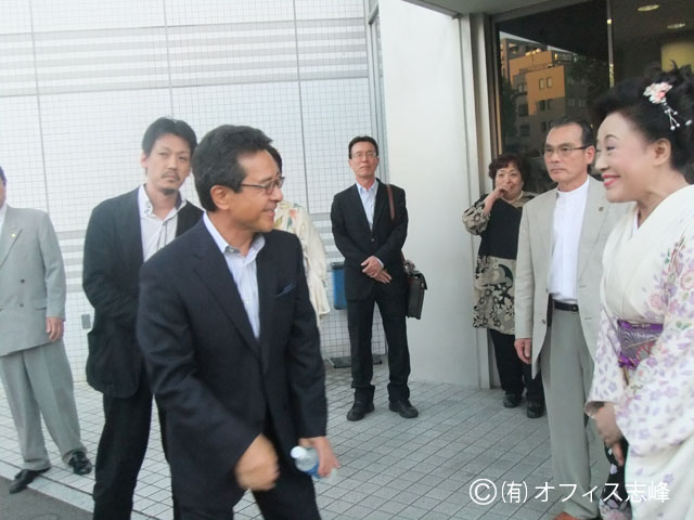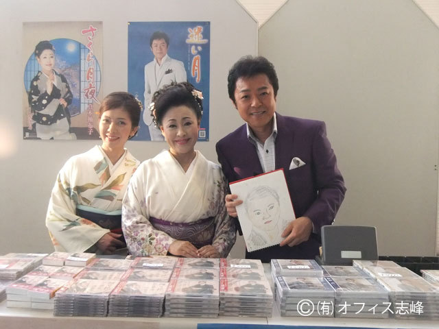 久しぶりの広島、今回のゲストは『さくら月夜』の作曲をしてくださった弦 哲也先生、藤原 浩さん、松永ひとみさんの4人。3人、和気藹々のサイン即売会。弦 哲也先生はひと足先に会場を出発。皆でお見送り。