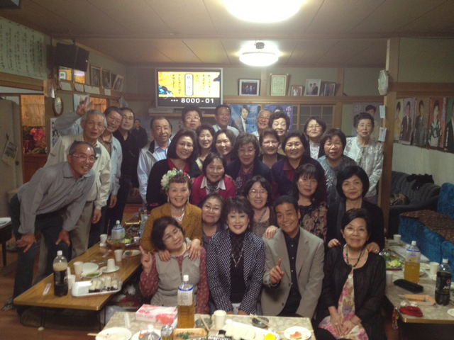 今日、博多から新幹線で宮崎県小林市に向かった。1000人以上入る会場がいっぱいで、岩出和也さんと二人がゲスト。打ち上げは先生の御宅兼レッスン場。和気藹々の中、皆さんと集合写真。 せ〜の"真木〜"と言いながら撮られると、ね(^-^)/皆いい顔してるでしょ?これ流行らせようと思っています。