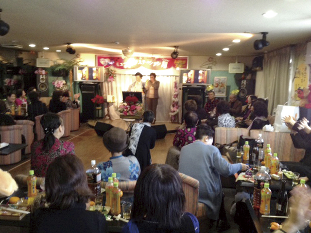 ここは横浜柚の会の皆さんが集まる交流の場です。もしタイミングが良ければ「さくら月夜」のカラオケ映像に出ている正藤竜之助君が一緒に踊ってくれるかも!最後は決めポーズを撮影して記念に!・・・でも、竜之助君は普段から衣装を着てる訳じゃありませんよ(笑)