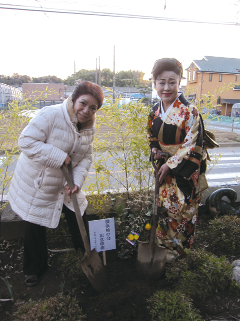 横浜柚の会の皆様と横浜柚の会が発足され、記念に柚の木の植樹式が行われた。代表の正藤勘扇先生と