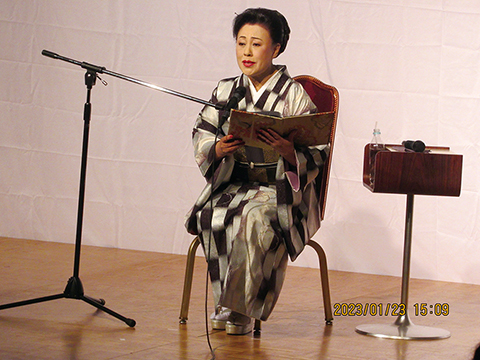 皆さんに歌唱して頂いた後、語り芝居『思案橋物語』